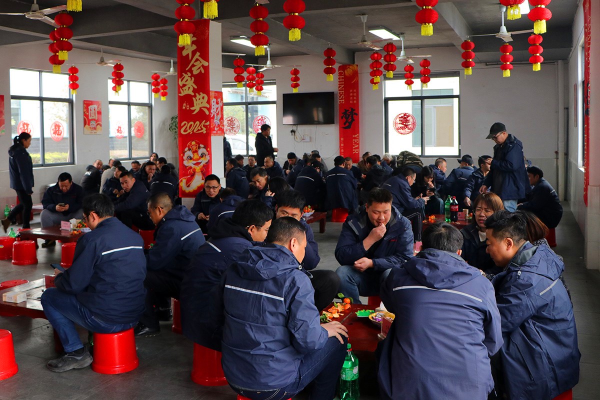 團年飯期間,食堂內歡聲笑語不斷。大家或舉杯共飲,或談笑風生,或合影留念,共同度過了一個溫馨而難忘的夜晚。這場新春團年飯不僅加深了員工之間的友誼和團結,也為大家提供了一個放松身心、享受美食的機會。