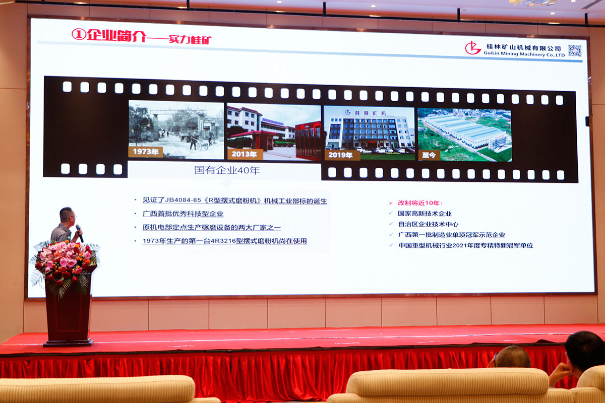 作為行業(yè)久負盛名的粉體設備研發(fā)、制造企業(yè),桂林礦機副總工程師、研發(fā)部經理王劍瓊應邀出席并作大會發(fā)言,他回顧了桂林礦機在國有企業(yè)40年里頭的榮譽,見證了《R型擺式磨粉機》行業(yè)標準的誕生;改制后不斷與時俱進開拓創(chuàng)新,榮獲國家高新技術企業(yè)、自治區(qū)“專精特新”中小企業(yè)、第一批制造業(yè)單項冠軍示范企業(yè)等殊榮。