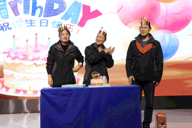 年會(huì)上,公司還為本月過(guò)生日的員工舉行了生日會(huì)。眾人齊唱著生日祝福歌,壽星們頭戴著皇冠,許下自己新一年的愿望。