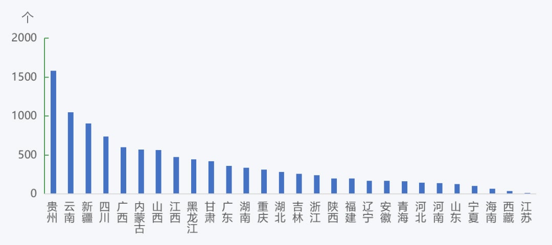截至2021年年底,從各省(自治區、直轄市)砂石礦山的分布情況來看,貴州、云南砂石礦山數量最多,分別為1582個、1050個;新疆、四川、廣西、內蒙古、山西砂石礦山數量為500~1000個;江西、黑龍江、甘肅、廣東、湖南、重慶砂石礦山數量為300~500個;湖北、吉林、浙江、陜西、福建、遼寧、安徽、青海、河北、河南、山東、寧夏砂石礦山數量為100~300個;海南、西藏、江蘇砂石礦山數量均在100個以內;北京、天津、上海砂石礦山數量為0。